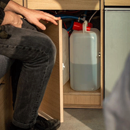 selon la taille de votre véhicule et du degré d'autonomie souhaité. D'un simple évier avec jerrican à une installation complète avec douche intérieure ou extérieure et eau chaude, nous avons la solution à votre besoin.